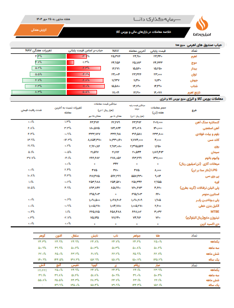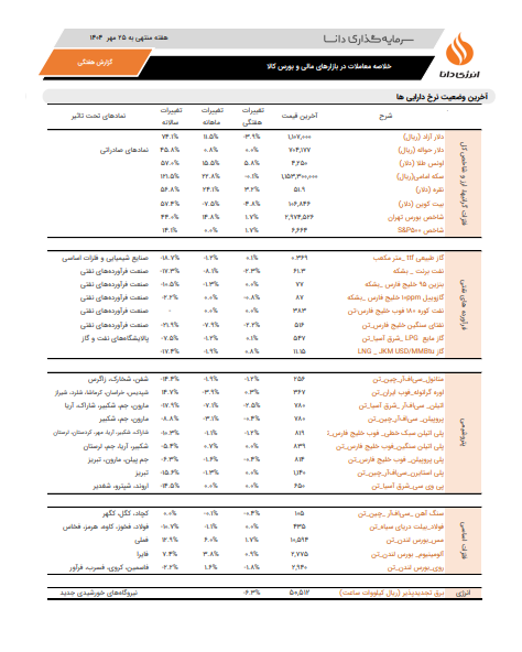 خلاصه معاملات در بازارهای مالی و بورس کالا به کوشش انرژی دانا