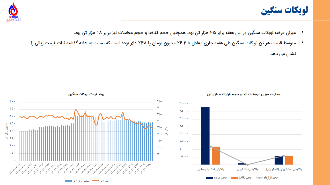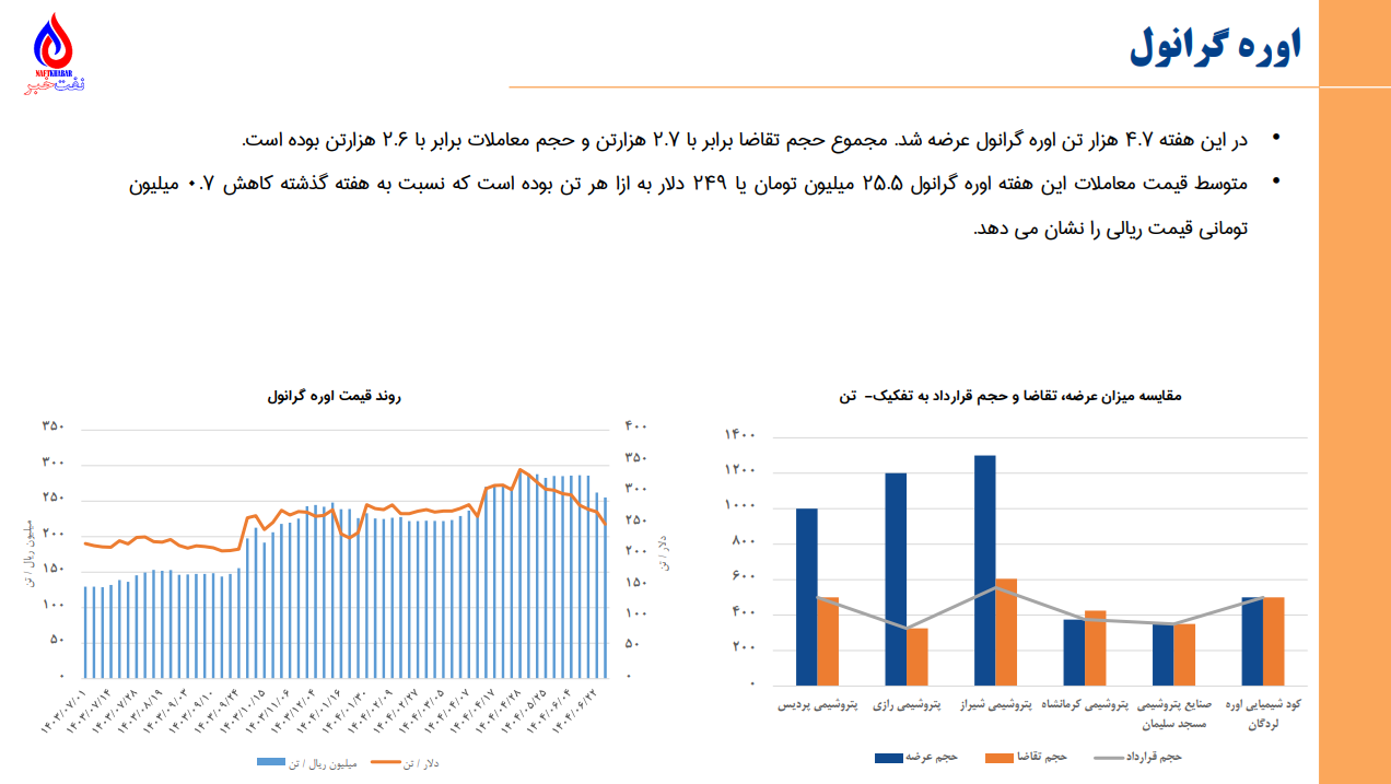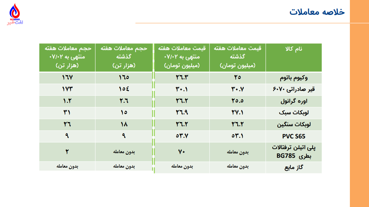 مجموع ارزش معاملات پتروشیمی و فرآورده های نفتی در بورس کالا و انرژی در روزهای 29 شهریورماه تا 2 مهرماه برابر با 23.4 هزار میلیارد تومان یا 224 میلیون دلار می باشد.