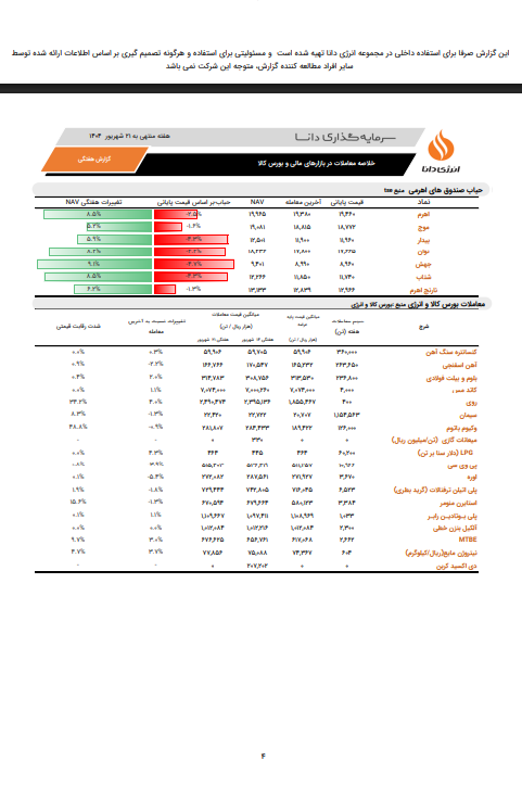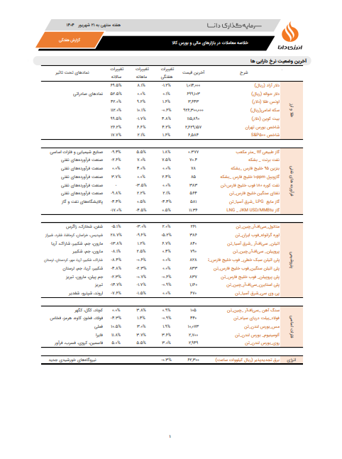 خلاصه معاملات در بازارهای مالی و بورس کالا به کوشش انرژی دانا