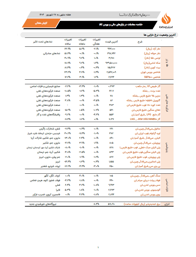 #بولتن هفتگی بازار به کوشش انرژی دانا