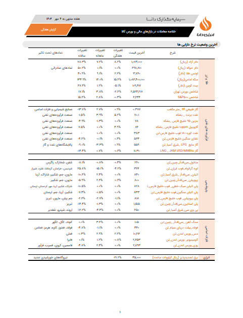 #بولتن هفتگی بازار به کوشش انرژی دانا